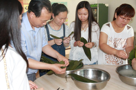 后勤員工們到達食堂后,將已經(jīng)泡好的糯米,粽葉,棉線(xiàn)一一擺放整齊,然后開(kāi)始包粽子。許多年輕的職工是第一次包粽子,有經(jīng)驗的領(lǐng)導就進(jìn)行現場(chǎng)示范。大家認真學(xué)習,很快就基本掌握了包粽子技巧。員工表示,通過(guò)此次活動(dòng)不僅學(xué)到了本事,也懂得了食物的來(lái)之不易,雖然自己包的粽子不是很漂亮,但是勞動(dòng)的喜悅難以言表。并希望以后單位多多舉行這樣的活動(dòng)。